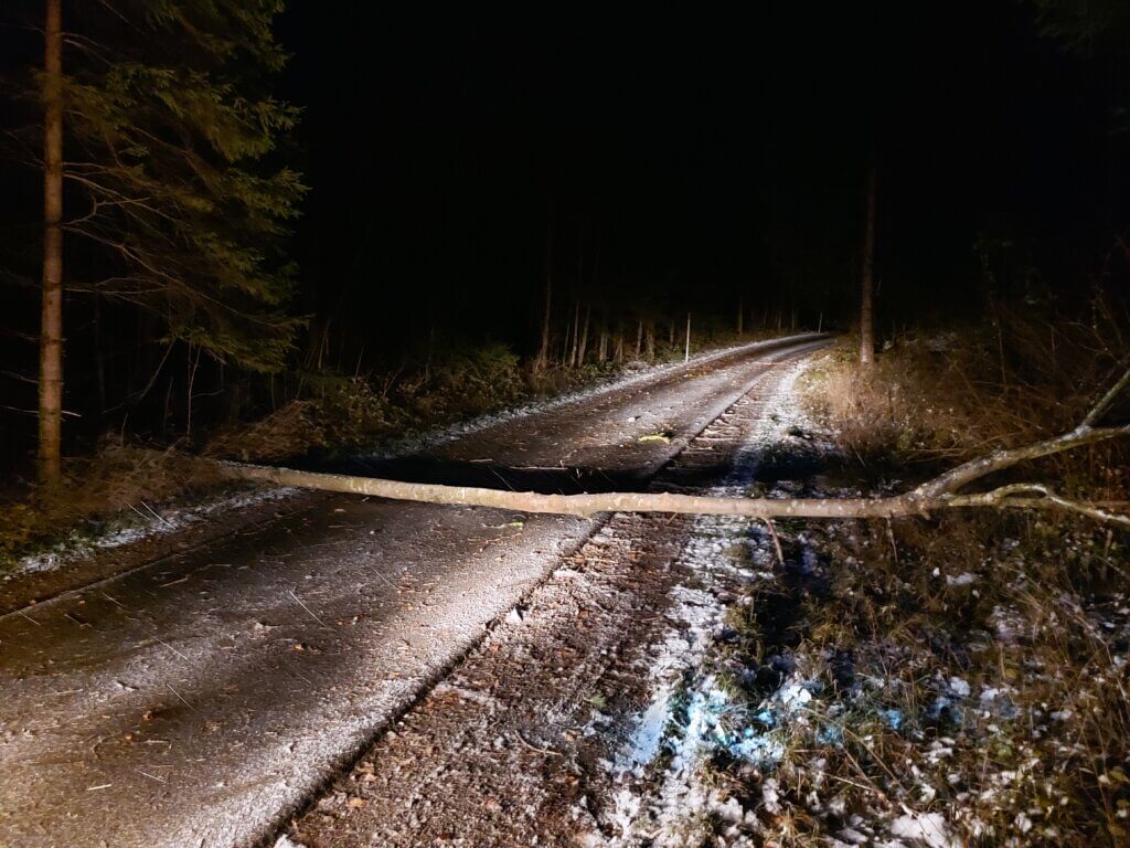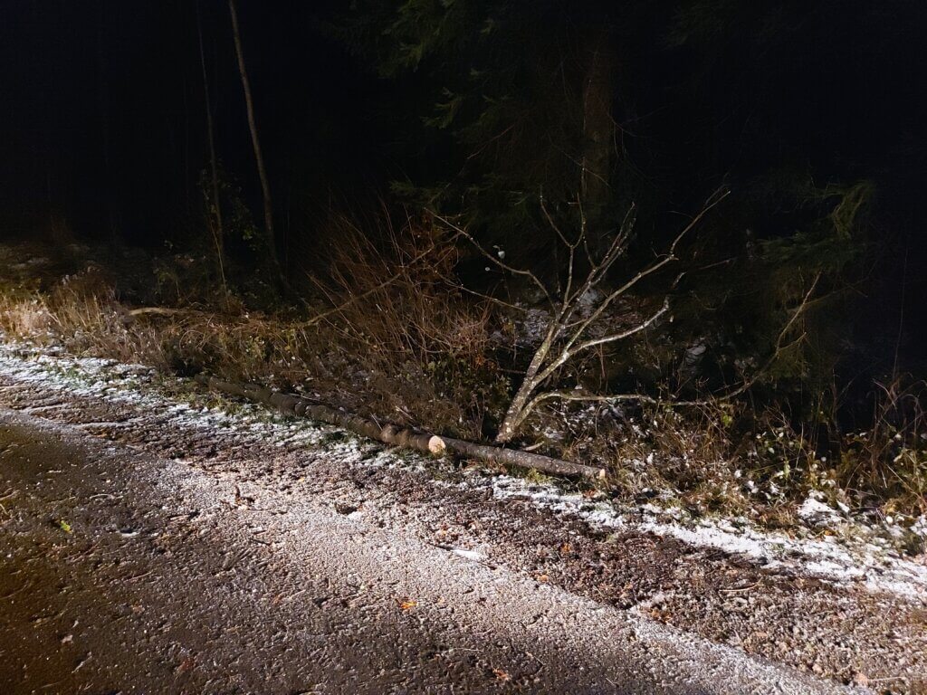 Heute sind wir gegen 06:00 Uhr ausgerückt um zusammen mit der Feuerwehr St. Anton einen Baum von der L188 weg zu räumen. Durch den starken Wind ist dieser auf die Strasse gefallen und hat eine Fahrspur blockiert.