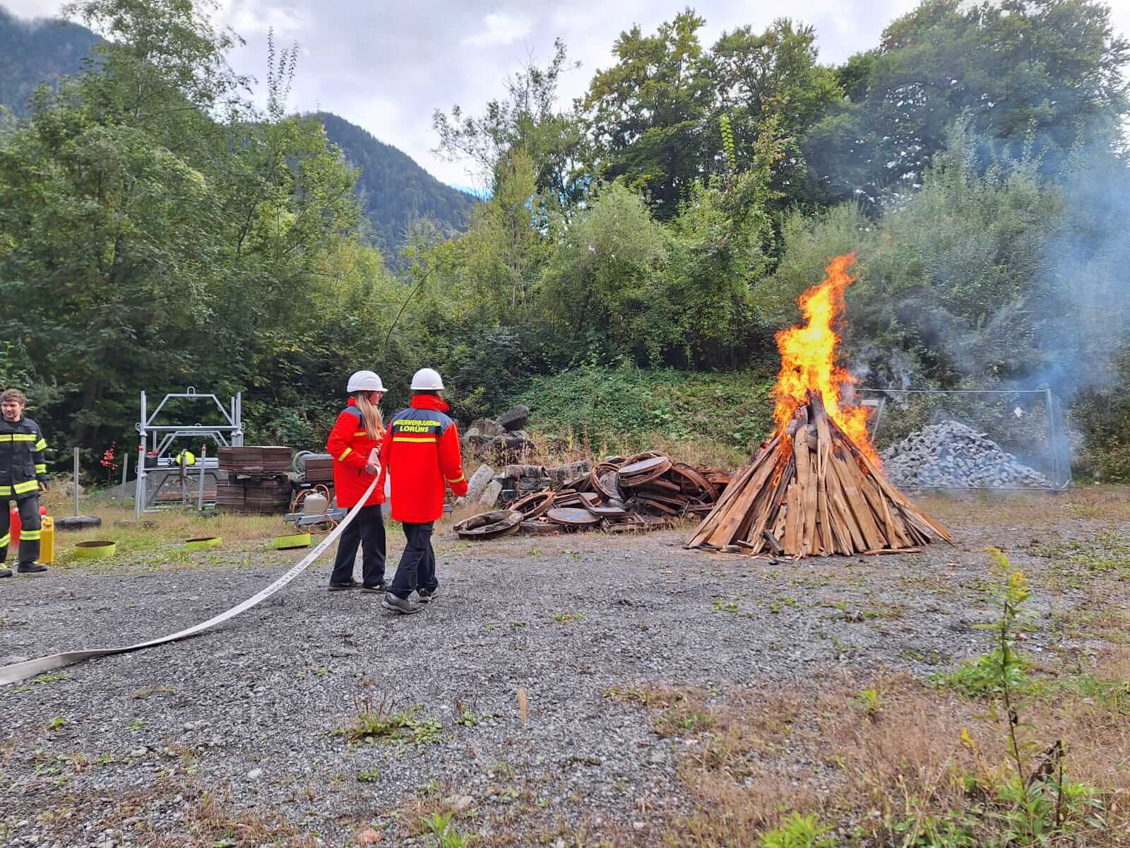So mussten die Feuerwehrjugend einen Brand mit Hilfe des Tanklöschfahrzeuges bekämpfen. Zusätzlich wurde die Brandbekämpfung mit Hilfe von Feuerlöschern geübt.